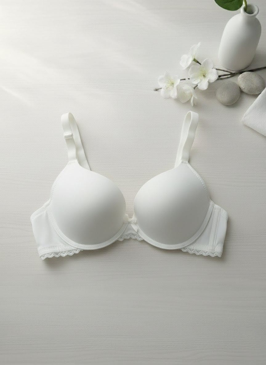 Wrap yourself in smooth confidence with this beautifully crafted padded underwire bra. Designed for women who love a clean, invisible look under their favorite outfits, it offers soft padding, gentle lift, and a flexible band that moves with your body. The underwire gives you shape without discomfort, while the adjustable straps ensure a personalized fit every time. Whether you're dressing for work, daily errands, or a fitted evening top, this bra delivers seamless elegance with reliable support. A tiny ribbon between the cups adds a touch of femininity, making it both practical and pretty.
